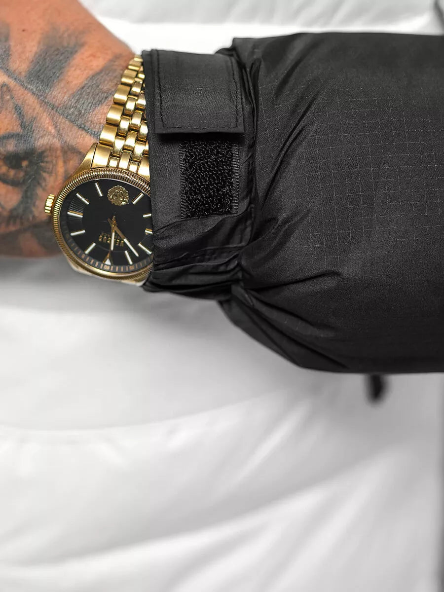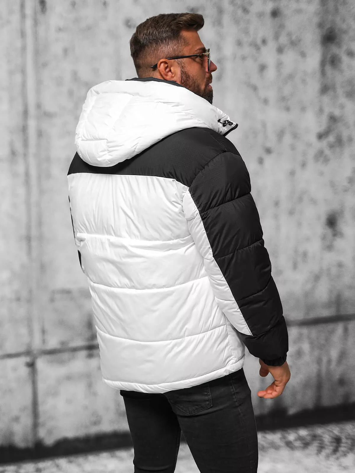 Vīriešu stepēta ziemas jaka ar kapuci. Stilīgajai jakai ir regulējamas piedurknes un kabatas ar rāvējslēdzējiem.