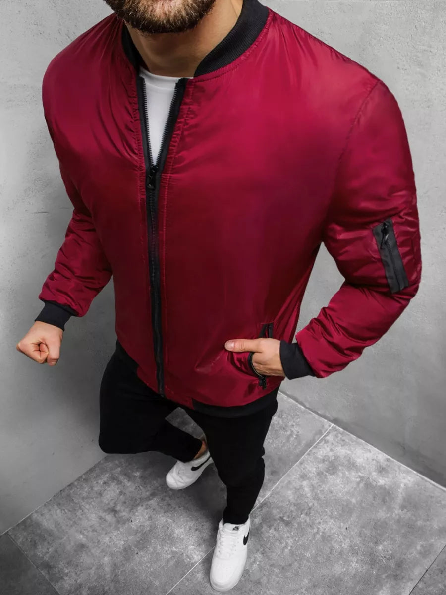 Vīriešu pavasara jaka bez kapuces. Jaka aiztaisāma ar rāvējslēdzēju. Kabatas arī aiztaisāmas ar rāvējslēdzēju.