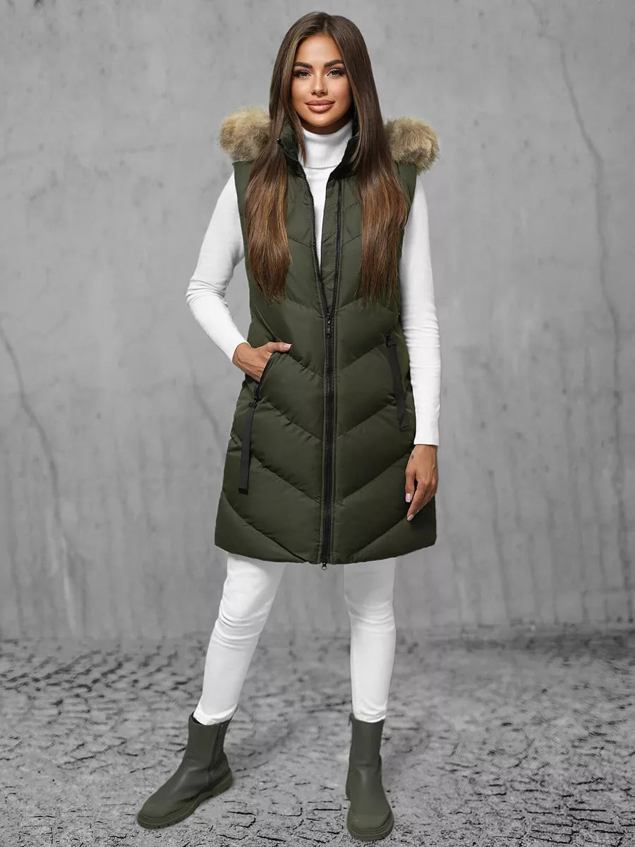 Sieviešu daudzpusīga veste ar kažokādas kapuci. Kabatas ar rāvējslēdzēju.