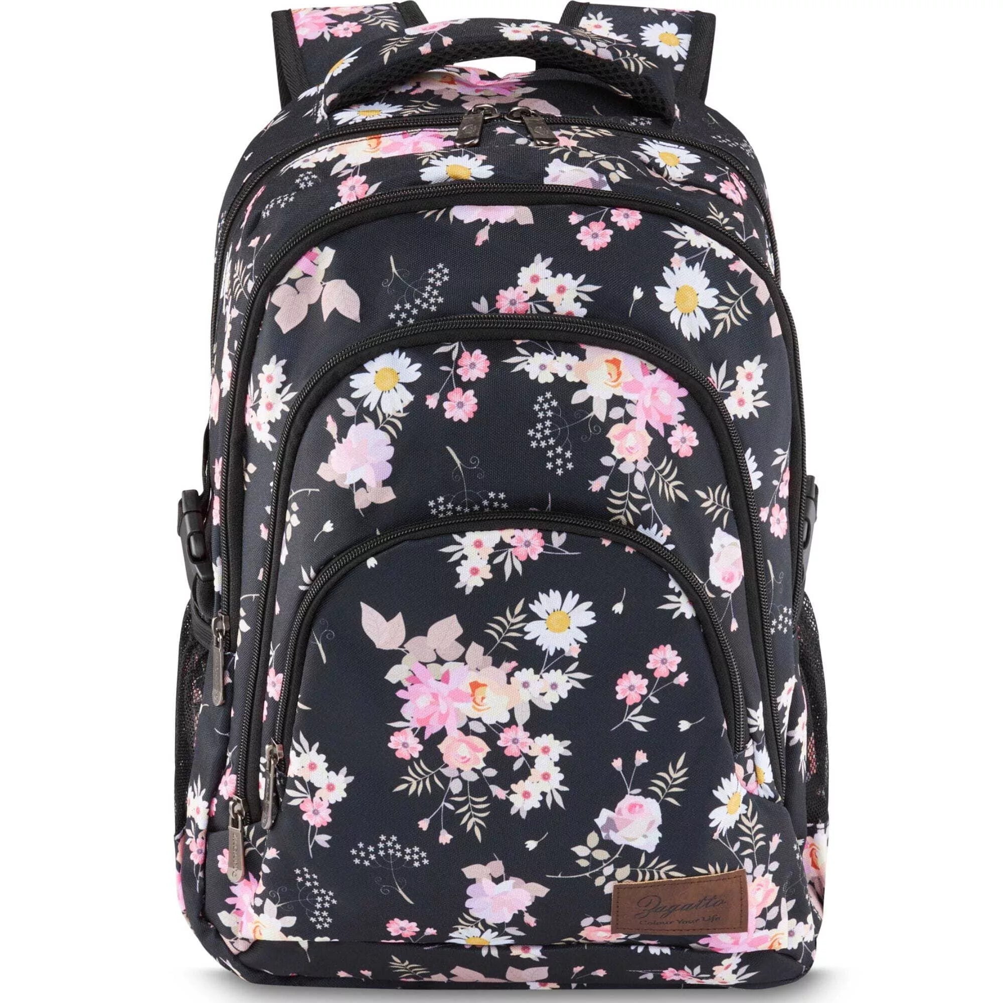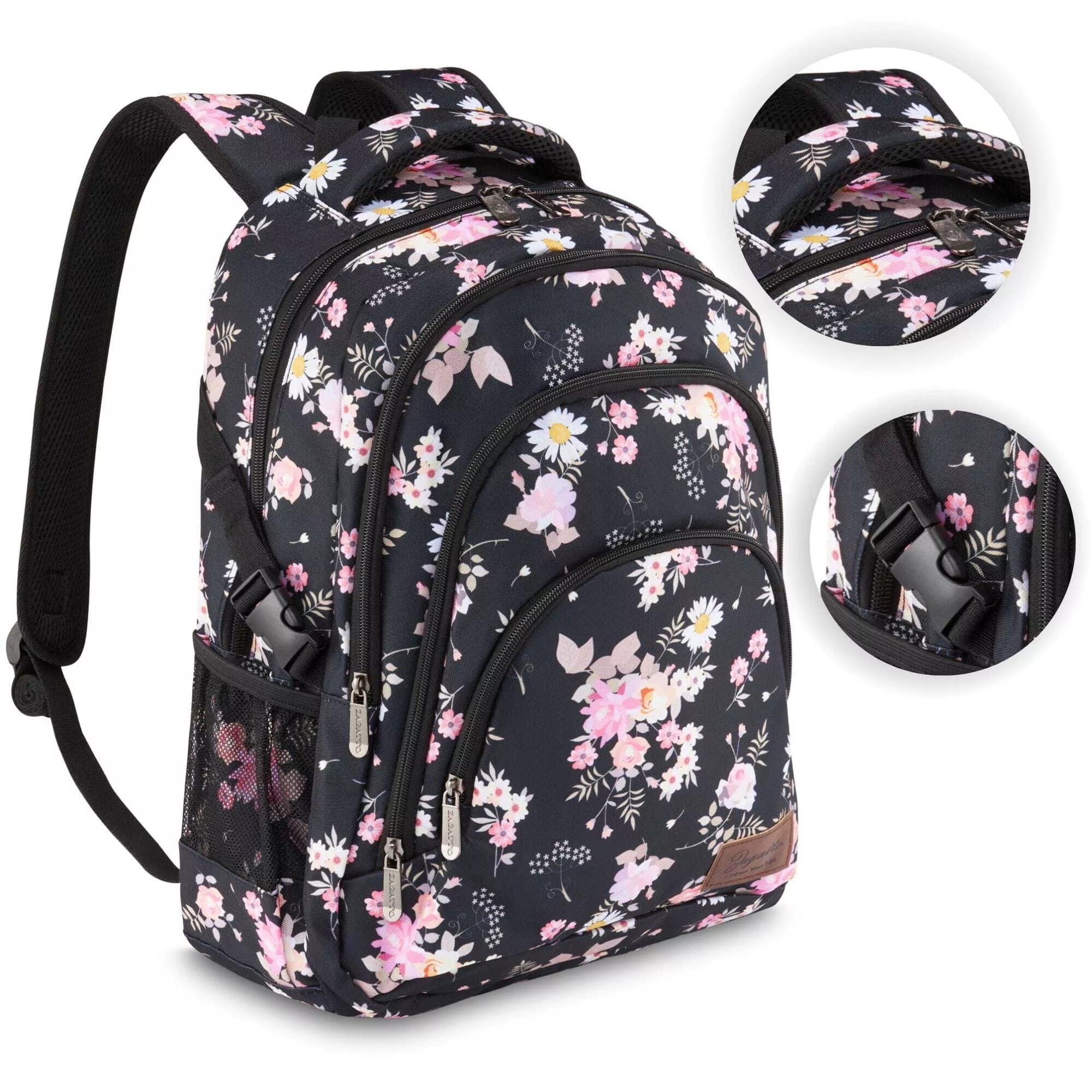 Kabatu skaits: 4 — divas ūdens pudelei, trīs atsevišķas, vieta klēpjdatoram, sieta kabata ar rāvējslēdzēju