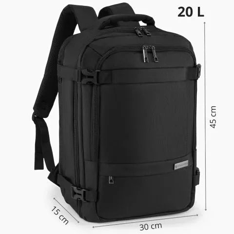 Ceļojumu mugursoma ar nodalījumu klēpjdatoram ir stila un funkcionalitātes apvienojums, kas atbildīs mūsdienu ceļotāja prasībām. Neatkarīgi no tā, vai dodaties īsā komandējumā vai ilgākā ceļojumā, šī mugursoma nodrošinās jūsu vērtīgāko mantu komfortu un drošību. Mugursomai ir divi rokturi, kas ļauj mugursomu nēsāt vertikāli vai horizontāli — jūs izlemjat! Pateicoties četrām kompresijas siksnām, jūs varat viegli samazināt bagāžas apjomu. Mugursomu var izmantot kā rokas bagāžu WizzAir lidojumos.