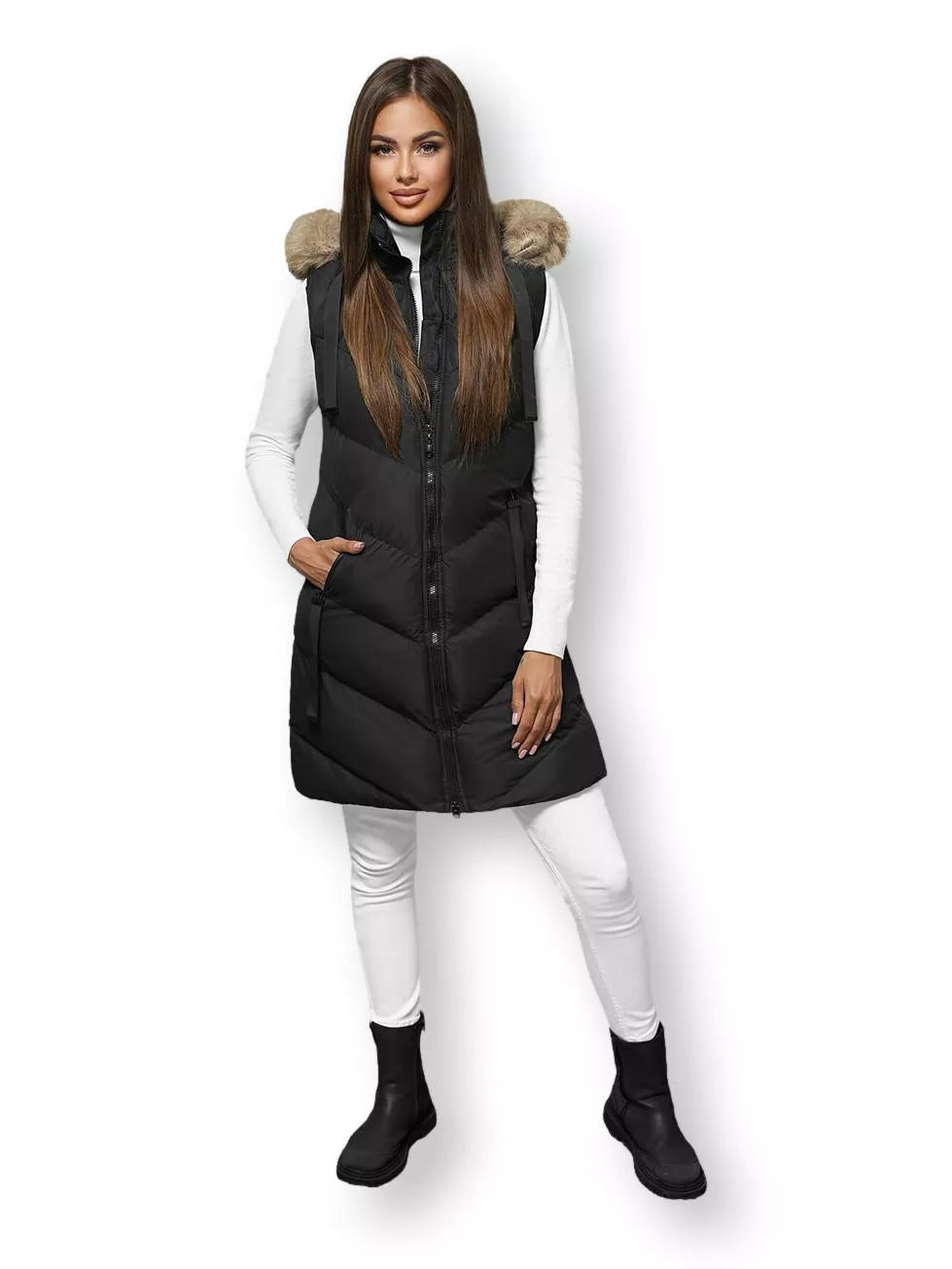 Sieviešu daudzpusīga veste ar kažokādas kapuci. Kabatas ar rāvējslēdzēju.