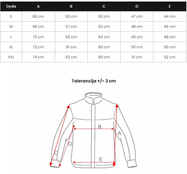 Materiāls: 100% poliesters; Modele (182 cm, 87 kg) valkā XL izmēru.