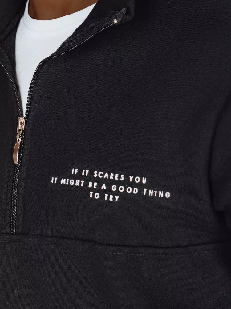 Stilīgs vīriešu džemperis brīvā piegriezumā. Modelis bez kapuces, ar praktisku pusgaruma rāvējslēdzēju un ķengura kabatu. Uzmanīgs raksts uz krūtīm piešķir modernu akcentu. Elastīgas aproces un apakšmala nodrošina labu piegulšanu. Daudzpusīgs stils, kas lieliski piemērots ikdienas valkāšanai.