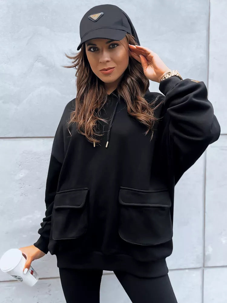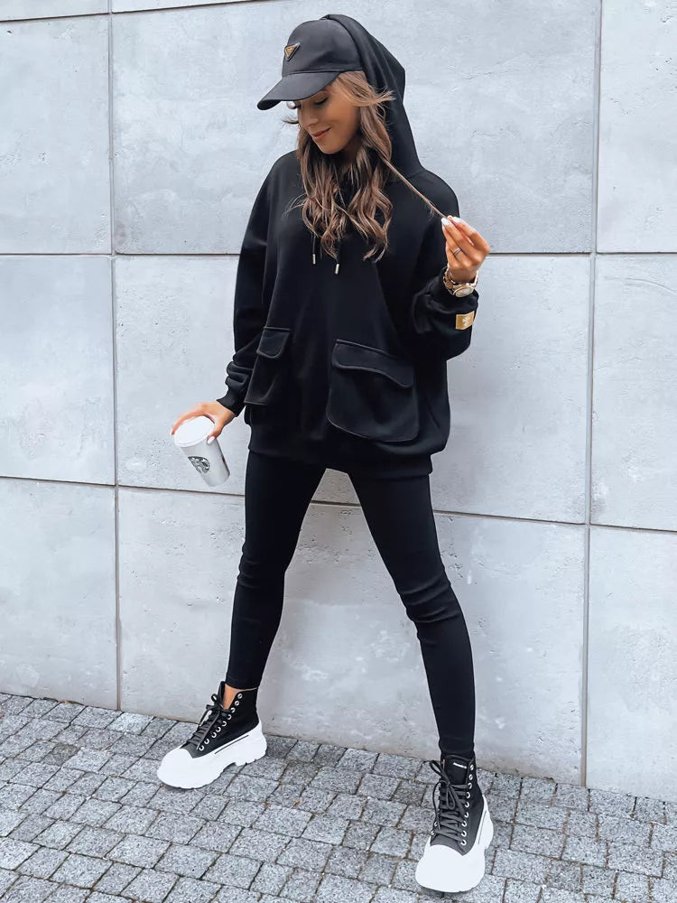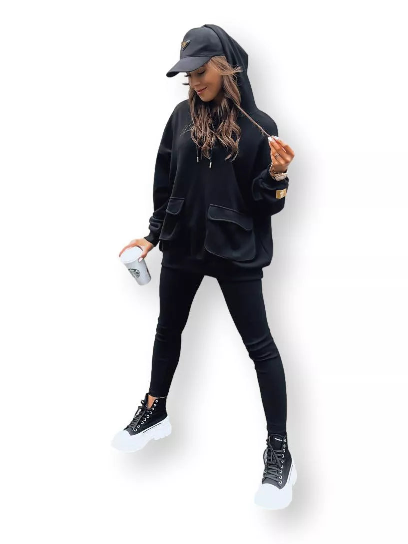 Sporta komplekts ir obligāts elements ikvienā garderobē neatkarīgi no sezonas. Šis kapučjakas un pieskaņotu legingu komplekts izskatīsies lieliski gan kopā, gan atsevišķi. Džemperim ir divas lielas kabatas, kas kalpo arī kā dekoratīvs elements.