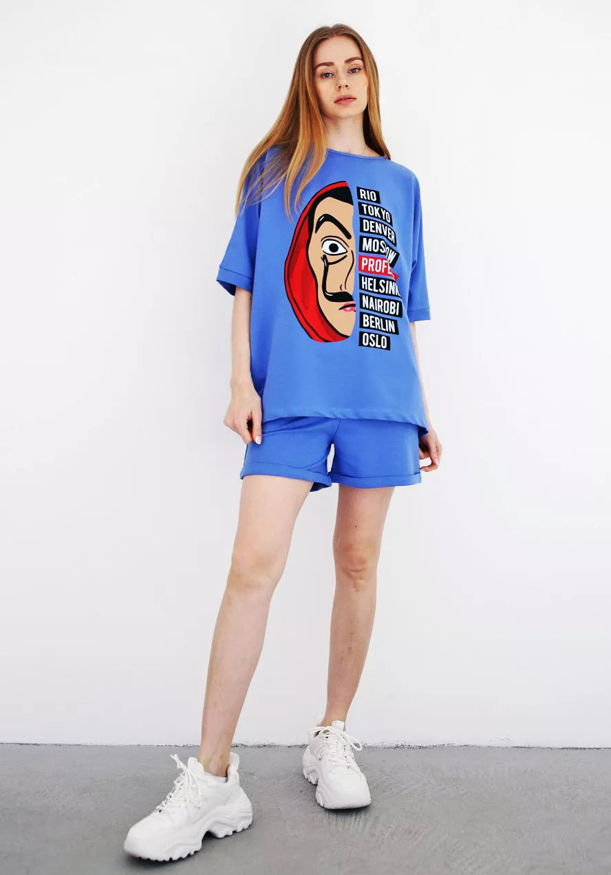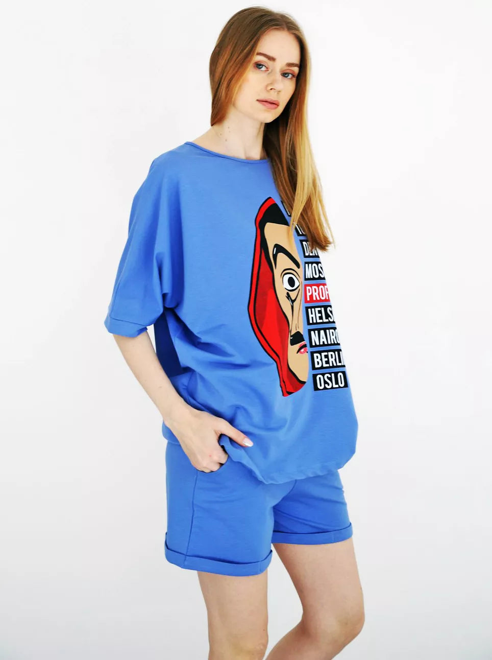 Sieviešu divdaļīgs komplekts patiks ikvienai komforta cienītājai. Neplūksnojošs T-krekls un šorti.