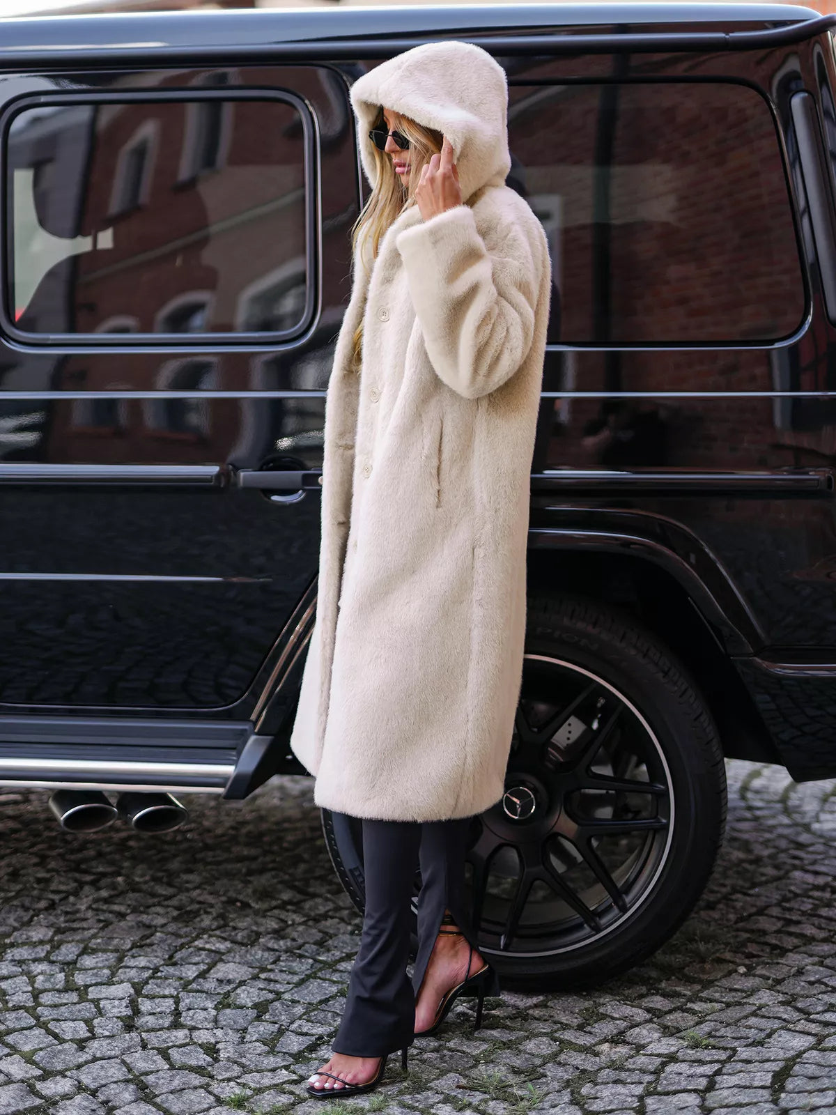Eleganti kažoki ar kapuci ir lieliski piemēroti aukstajai sezonai. Izgatavoti no mīkstas, mīkstas mākslīgās kažokādas, kas ne tikai izskatās grezni, bet arī nodrošina mājīgumu un komfortu. Garais modelis nodrošina papildu aizsardzību no aukstuma. Aizdare ar pogām priekšpusē - ērts un klasisks risinājums. Piemēroti gan ikdienas valkāšanai, gan elegantiem gadījumiem. Moderns dizains - lieliski piestāv pilsētvides stilam vai vakara izskatam. Stilīga izvēle sievietei, kura novērtē greznību, komfortu un vēlas izskatīties nevainojami pat aukstākajās dienās.