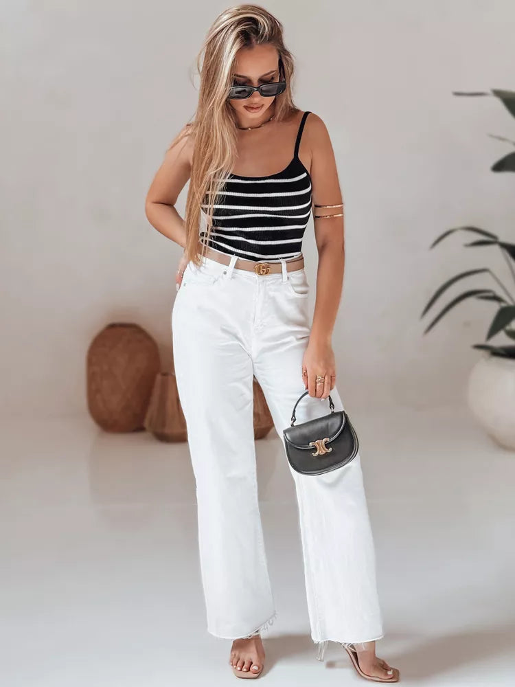 Sieviešu rievotais bodijs ar plānām lencītēm ir ērta un stilīga izvēle siltākām dienām. Horizontāli svītraini raksti optiski veido siluetu. Dziļais kakla izgriezums aizmugurē ir neuzkrītošs akcents, kas visam tērpam piešķir juteklisku sajūtu. Viens izmērs der visiem no XS līdz L. Lieliski piemērots pavasara dienām un vasaras stiliem - gan ikdienai, gan svētkiem.