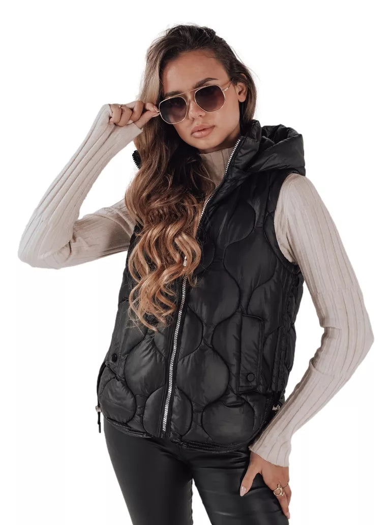 Šī sieviešu stepētā veste ar noņemamu kapuci ir lieliska izvēle pārejas sezonai. Viegla, bet labi izolēta, tā ir ideāli piemērota gan pastaigām, gan ikdienas valkāšanai. Praktiskas kabatas un moderna stepēta apdare piešķir tai pilsētniecisku eleganci. Lieliski piemērota valkāšanai ar apkakli vai džemperi.