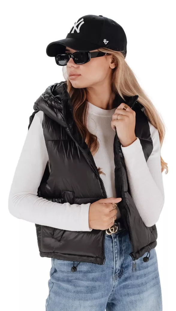 Stenda, īsa veste ir ideāli piemērota gaidāmajai rudens un ziemas sezonai. Unikālais dizains piestāvēs dažādiem tērpiem. Tai ir divas atvērtas kabatas praktiskumam. Savelkamās aukliņas ļauj pielāgot izmēru, lai nodrošinātu perfektu piegulumu.