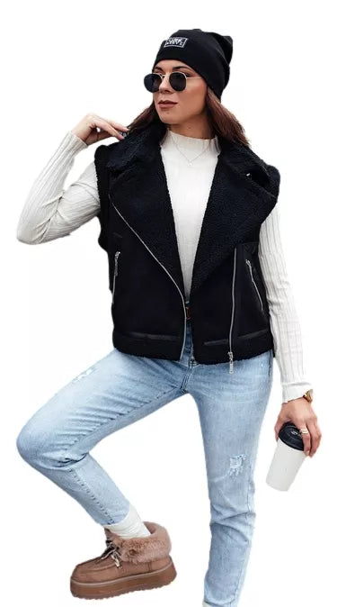 Šī zamšādas veste ar aitādas oderi apvieno komfortu un stilu, kas ir ideāli piemērota vēsākām dienām. Mīkstā zamšādas tekstūra un patīkamā aitādas odere piešķir siltumu un eleganci jebkuram tērpam. Funkcionālie sānu rāvējslēdzēji ne tikai atvieglo uzvilkšanu, bet arī piešķir vestei modernu, minimālistisku izskatu. Lieliska izvēle pastaigām pa pilsētu, kad vēlaties modernu izskatu, neupurējot komfortu.