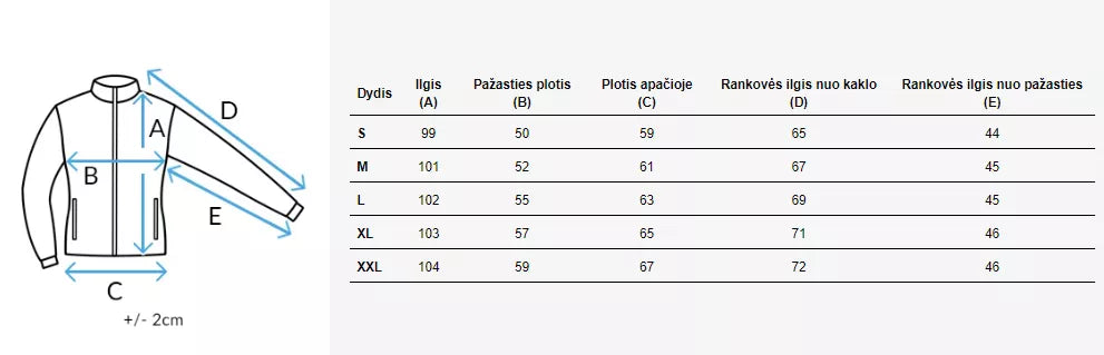 Izmēru tabulu varat atrast fotogalerijā.