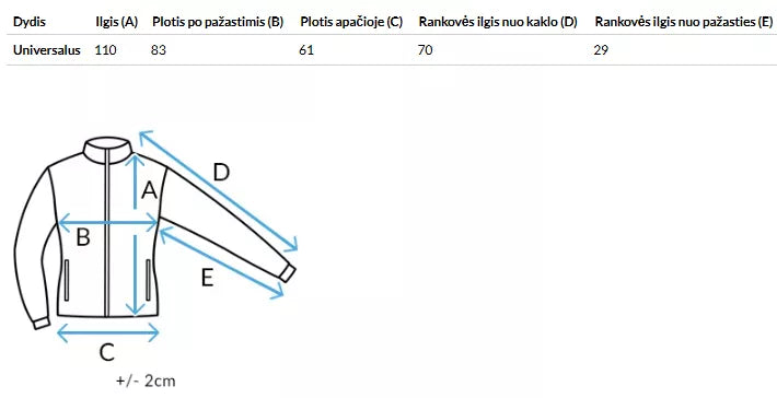 Atklājiet mūsu lielizmēra ziemas jaku, kas aukstās dienās nodrošina nepārspējamu siltumu un komfortu. Ar pilna garuma rāvējslēdzēju, fiksētu kapuci un divām ārējām kabatām tā ir ideāla funkcionalitātes un moderna dizaina kombinācija. Lielizmēra jaka piedāvā stilu un kustību brīvību, padarot to ideāli piemērotu gan ikdienas, gan elegantākam tērpam. Lieliski piemērota pastaigām aukstās dienās, darbam vai tikšanās reizēm ar draugiem. Sastāvs: poliesters. Modeļa izmēri: