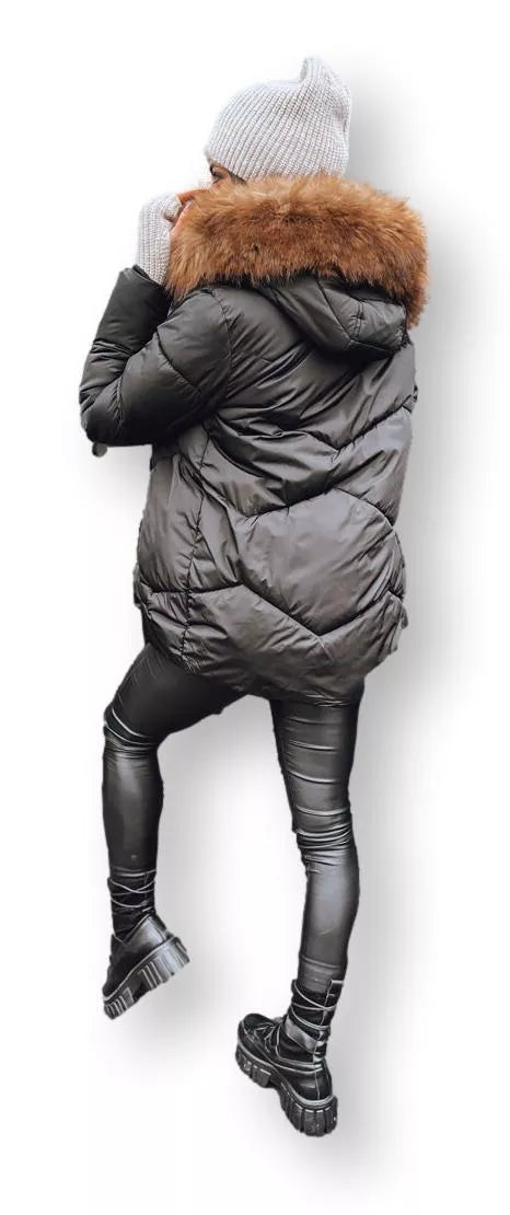Doran ziemas stepētā jaka ir izgatavota no viegli matēta materiāla, tā ne tikai piesaista uzmanību, bet arī nodrošina siltumu un komfortu aukstākās dienās. Jaka ir aiztaisāma ar rāvējslēdzēju un spiedpogām, kas garantē papildu siltumizolāciju un pasargā no aukstuma. Nenoņemamā kapuce ar kažokādu piešķir eleganci.