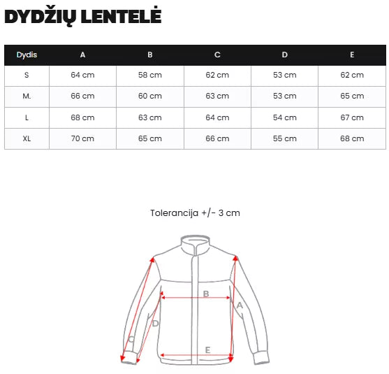 Izmēru tabulu varat atrast fotogalerijā.