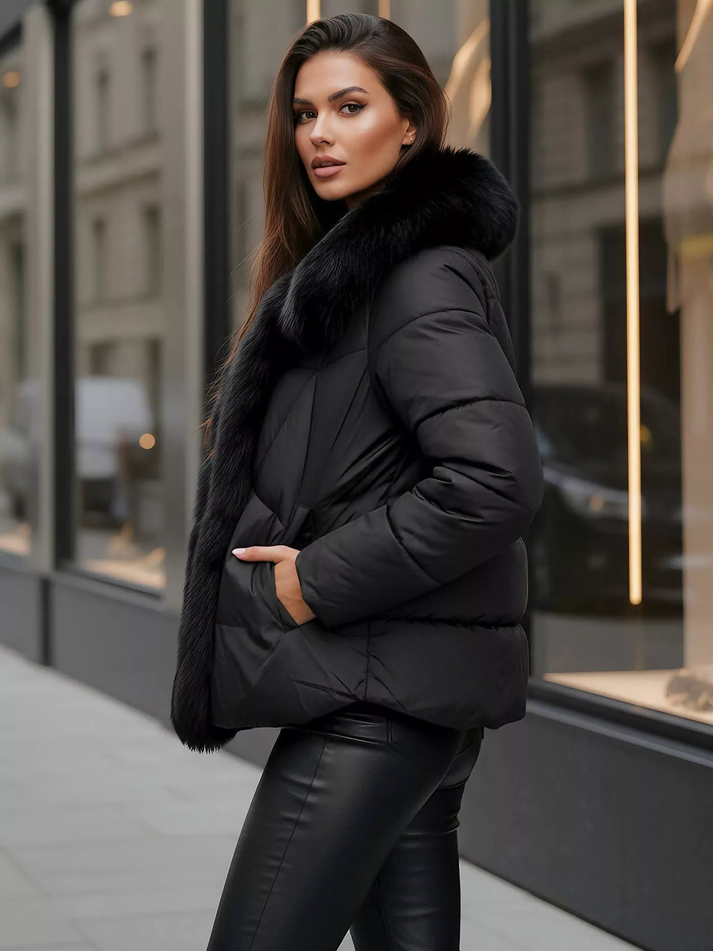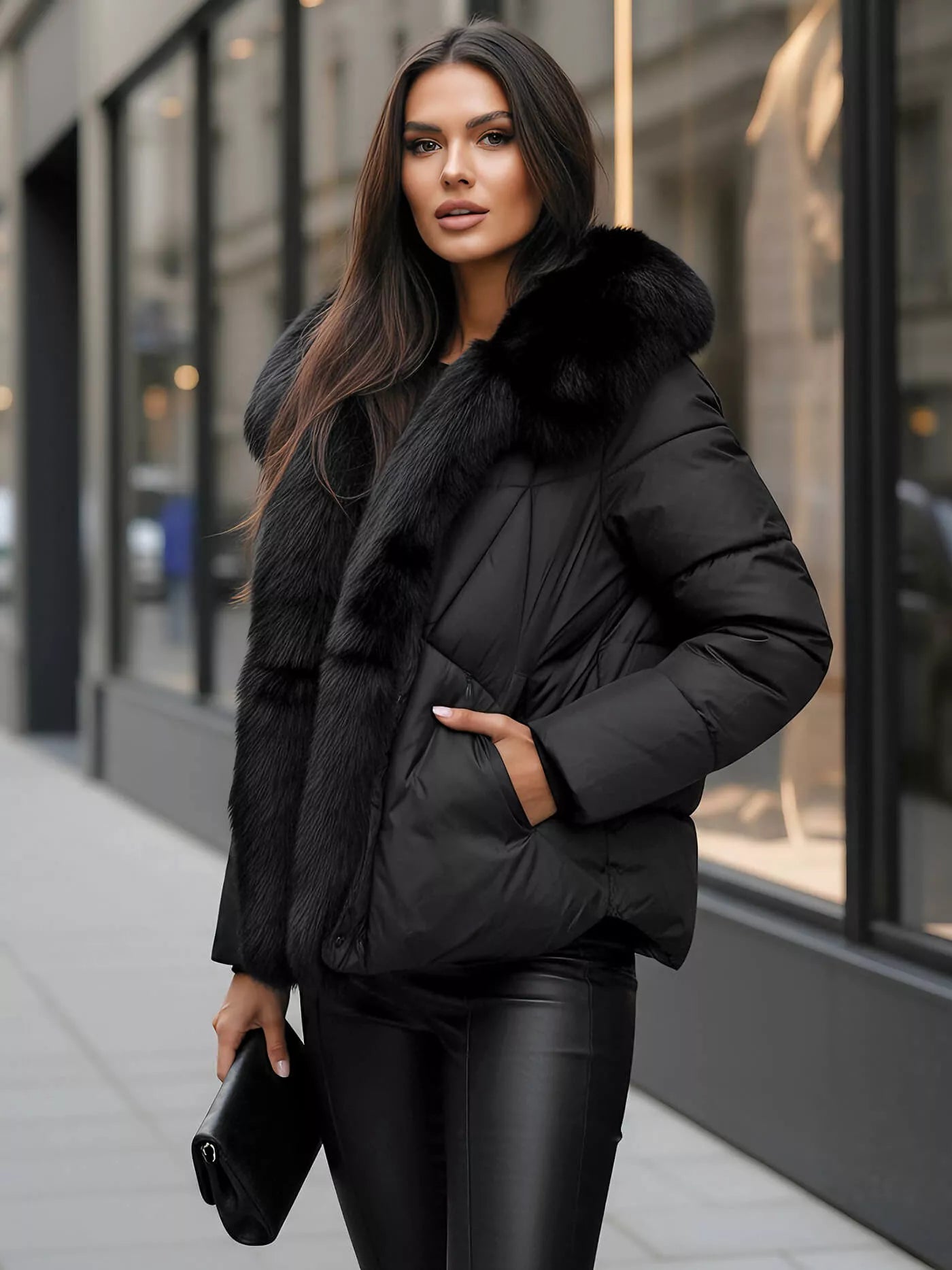 Īpašu akcentu sniedz plata, grezna izskata kažokādas apdare uz kapuces vai apkakles - tā vizuāli paceļ tēlu un piešķir eleganci. Šāds modelis ir lieliski piemērots gan ikdienas valkāšanai pilsētā, gan svētku rotāšanai īpašos gadījumos.