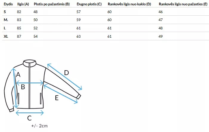 Izmēru tabulu varat atrast fotogalerijā.