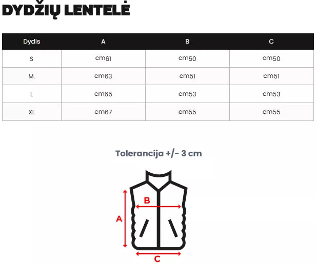 Izmēru tabulu varat atrast fotogalerijā.