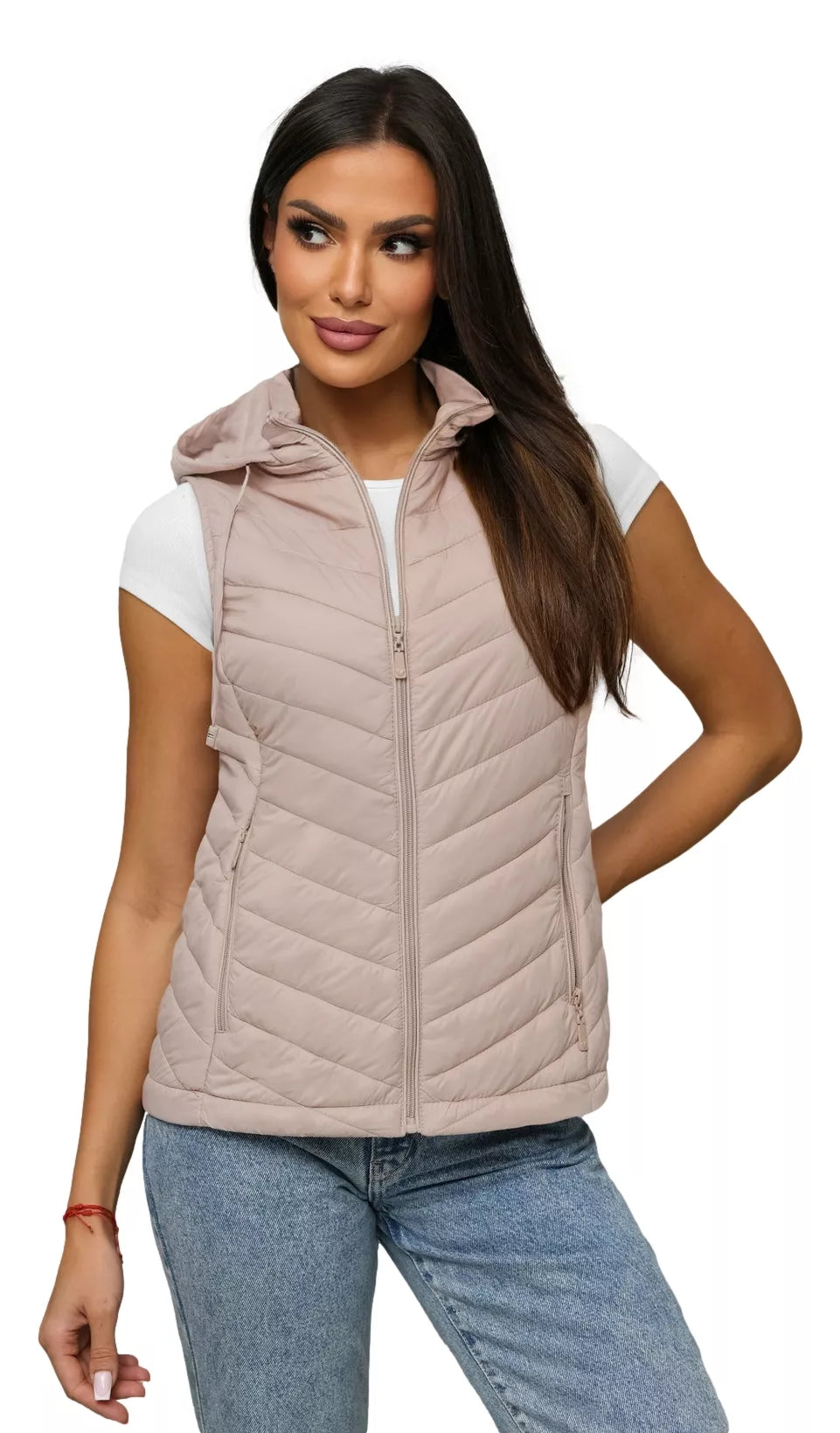 Sieviešu stepēta veste ar kapuci