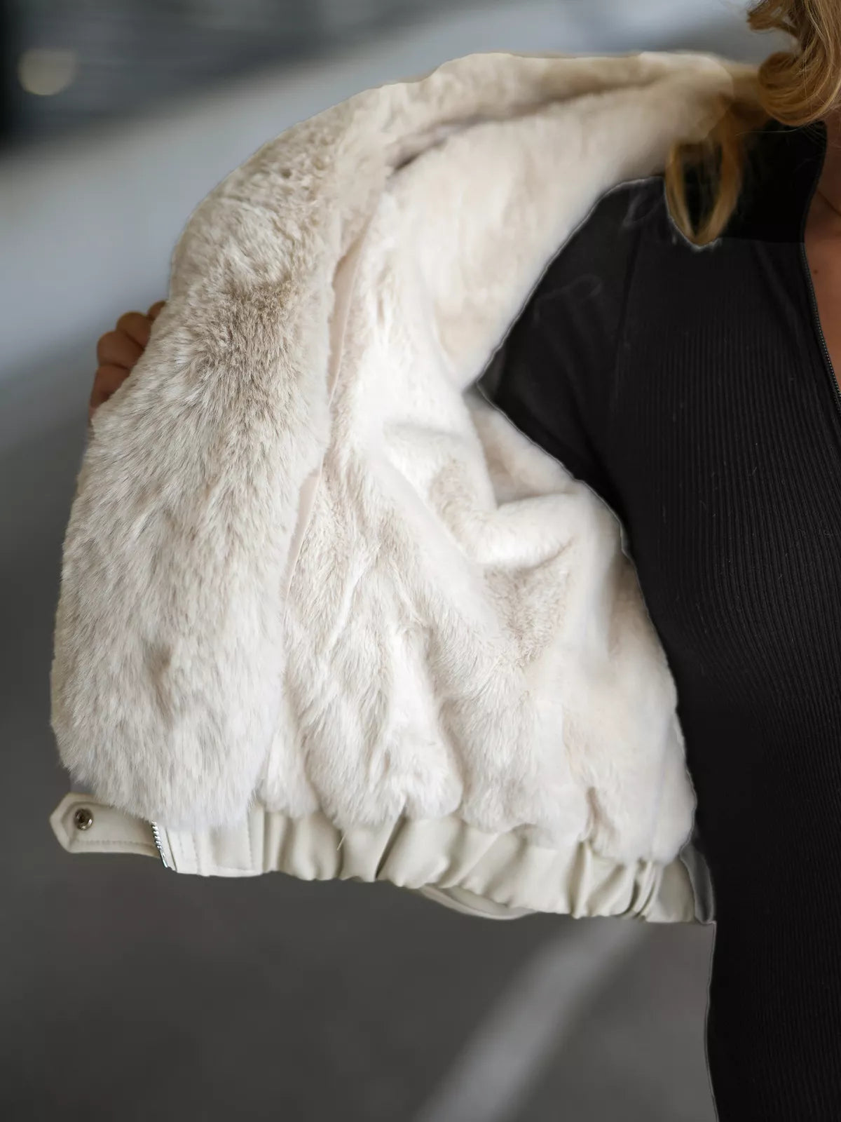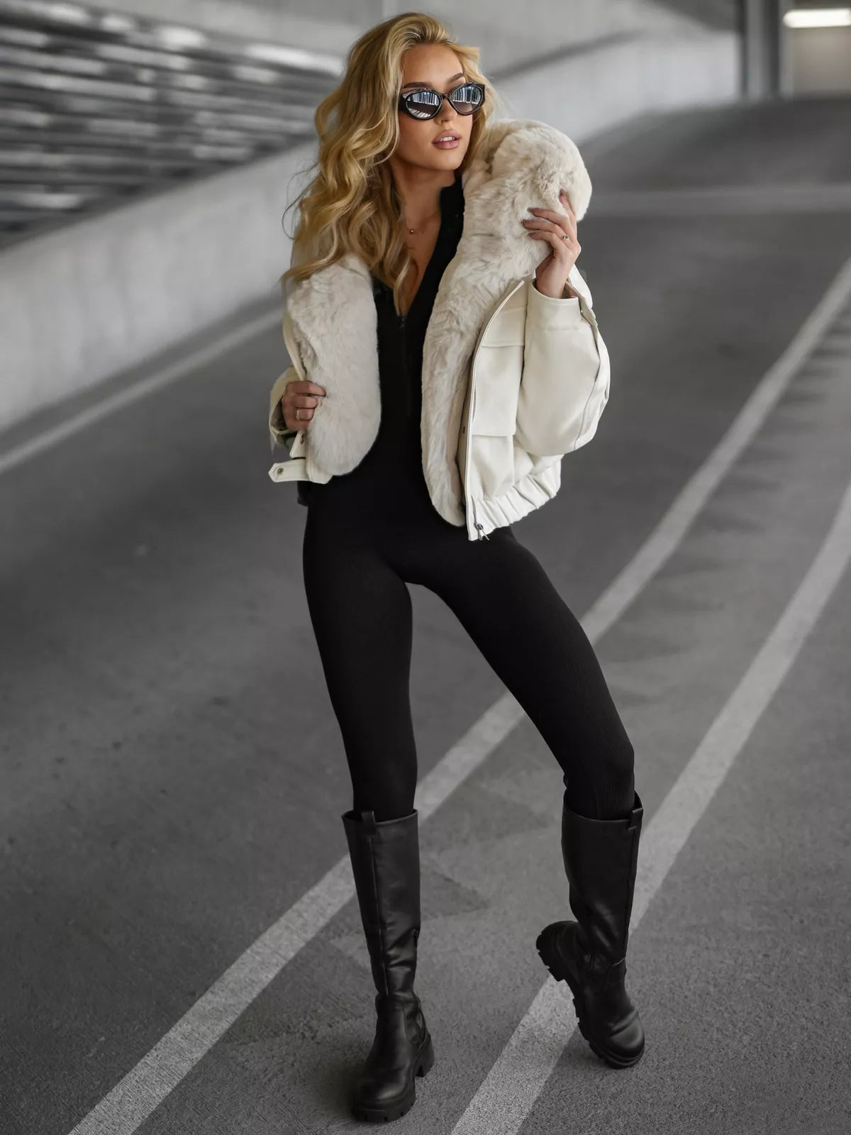 Šī unikāli veidotā jaka lieliski apvieno moderno modi un praktiskumu. Izgatavota no augstas kvalitātes eko ādas, tā izskatās stilīga un grezna, un siltais polsterētais materiāls iekšpusē un bagātīgā brūnā mākslīgā kažokāda nodrošina komfortu un aizsardzību no aukstuma. Kažokāda ir izņemama. Sānos ir kabatas. Īsāks, bomber stila modelis ar elastīgu jostasvietu izceļ siluetu, savukārt ērtas kabatas un izturīgs rāvējslēdzējs nodrošina funkcionalitāti.