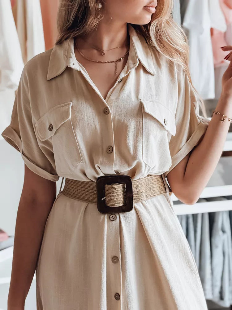 Stilīga kreklkleita ar krūšu kabatām un platu jostu ir sezonas obligāts apģērba gabals. Klasisko piegriezumu papildina moderns dizains, kas lieliski iederēsies gan ikdienišķā, gan elegantā stilā. Lieliski piemērota vasaras iziešanai.