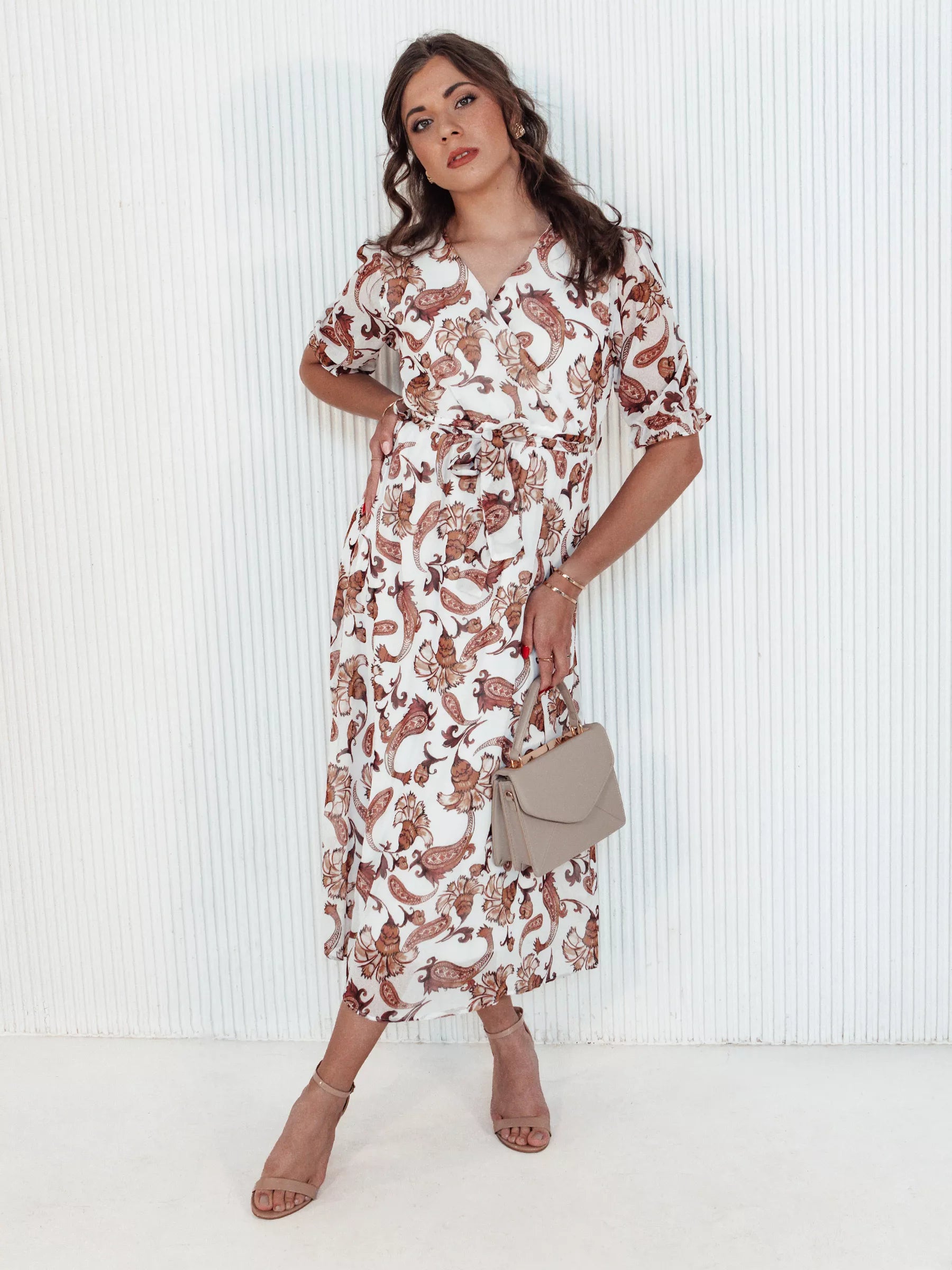 Unikālais kleitas modelis ir lieliski piemērots gan īpašiem gadījumiem, gan ikdienas stilam. Kleita ar V veida kakla izgriezumu un oderi. Elastīga jostasvieta un lencīte izceļ vidukli. Kleitas materiāls ir ne tikai skaists, bet arī patīkams pieskārienam.