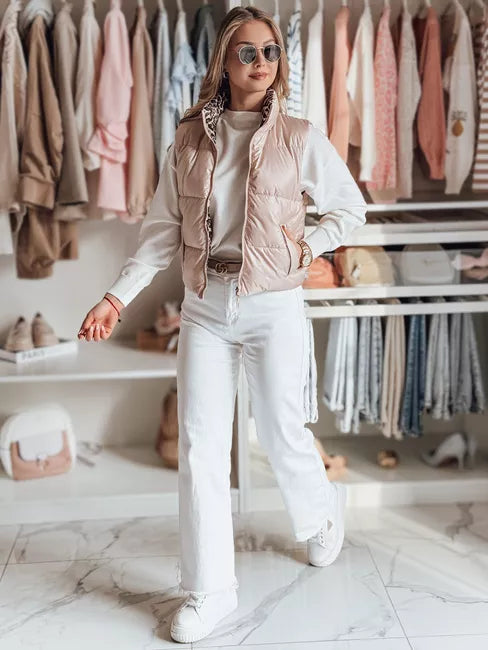 Sieviešu pārejas veste ar divpusēju dizainu, kas apvieno klasisko stilu ar modernu pieskaņu. Dekoratīvas iekšējās un ārējās kabatas piešķir šarmu un funkcionalitāti, savukārt regulējama apakšmala nodrošina perfektu piegulšanu. Ar rāvējslēdzēju, bez kapuces un vieglu oderi komfortam vēsākās dienās, šis modelis ir ideāli piemērots pārejas periodam un piestāv dažādiem stiliem.