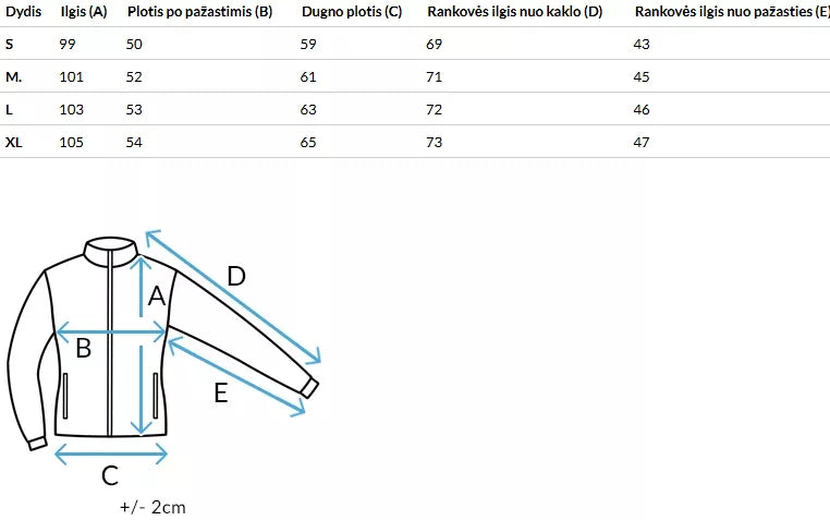 Izmēru tabula fotogalerijā.