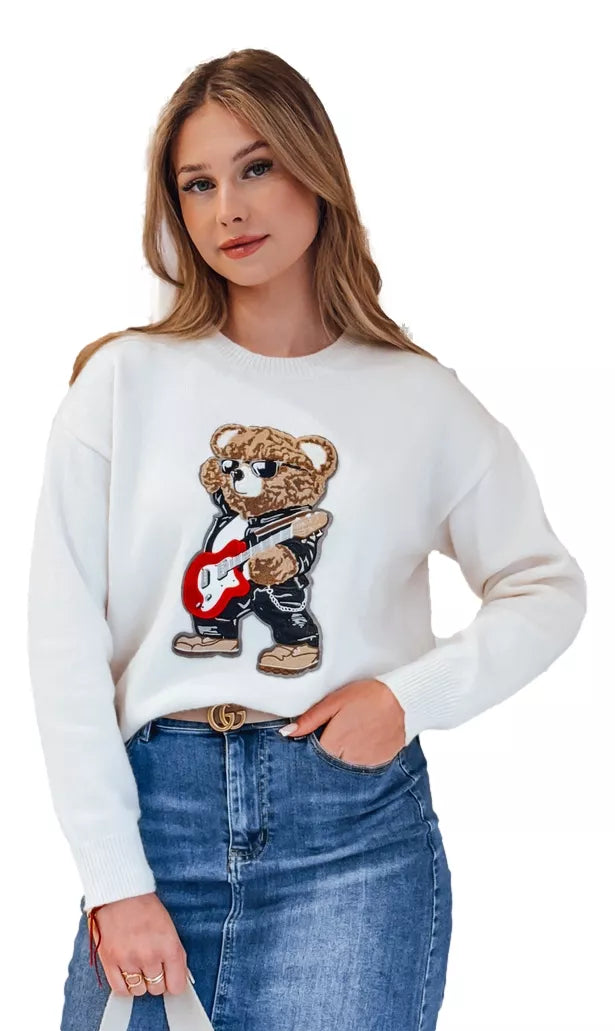 Šis viena izmēra liela izmēra sieviešu džemperis apvieno komfortu un modes akcentu. Viens izmērs der visiem no XS līdz L. Lācīša aplikācija piešķir šarmu, savukārt elastīgās aproces uzsver formu un nodrošina komfortu. Daudzpusīgais dizains labi sader ar džinsiem, svārkiem un ikdienas stilu. Obligāti jāiegādājas pārejas sezonā.