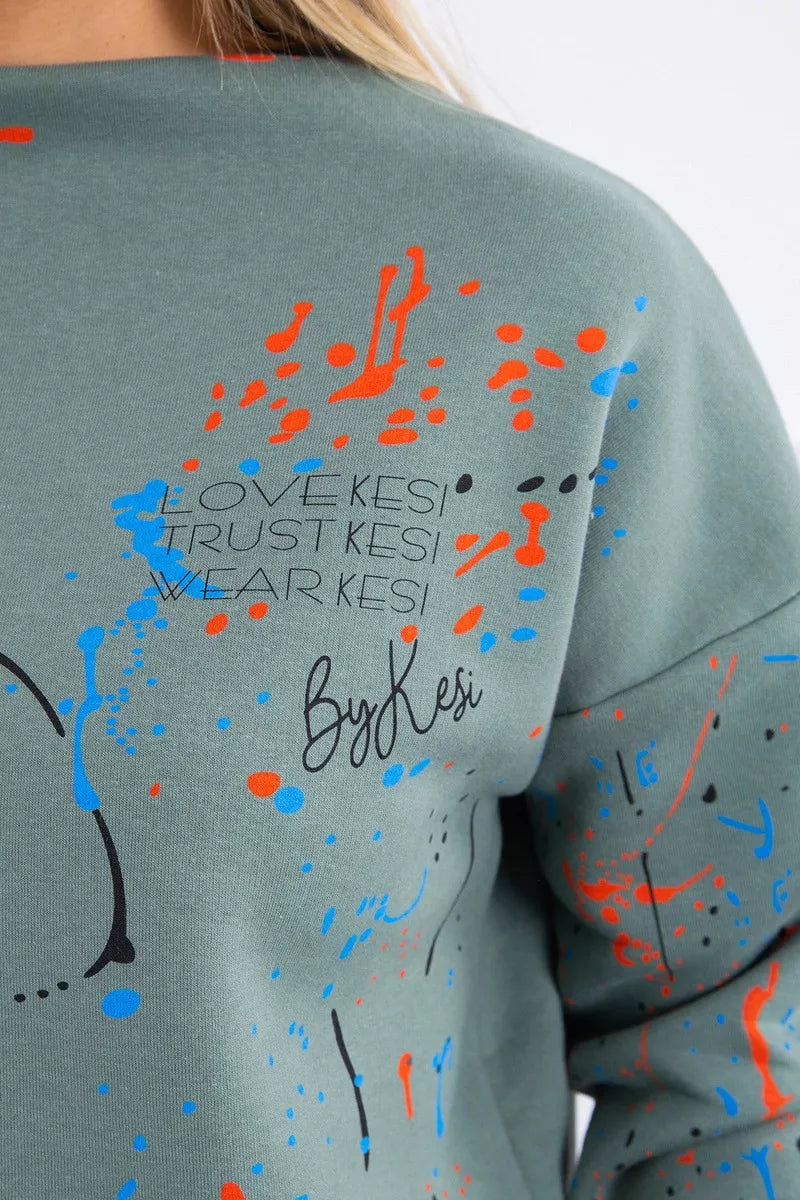 Siltināts džemperis un bikses komplekts. Džemperis un bikses ar krāsainu rakstu. Ja vēlaties izcelties no pūļa, šis komplekts ir tieši Jums. Izmērs ir universāls un piemērots sievietēm, kuras valkā S, M vai L izmēru.
