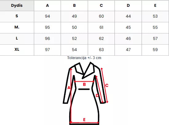 Plata, mīksta mākslīgās kažokādas apkakle un piedurkņu apakšmala. Noņemama kažokāda. Divkārša pogu rinda priekšpusē. Josta, lai nostiprinātu vidukli un izceltu figūru. Divas ērtas sānu kabatas. Šis mētelis ir ideāli piemērots unikālam izskatam, ja vēlaties apvienot siltumu un izsmalcinātu stilu. To var viegli kombinēt ar klasiskiem puszābakiem vai zābakiem.
