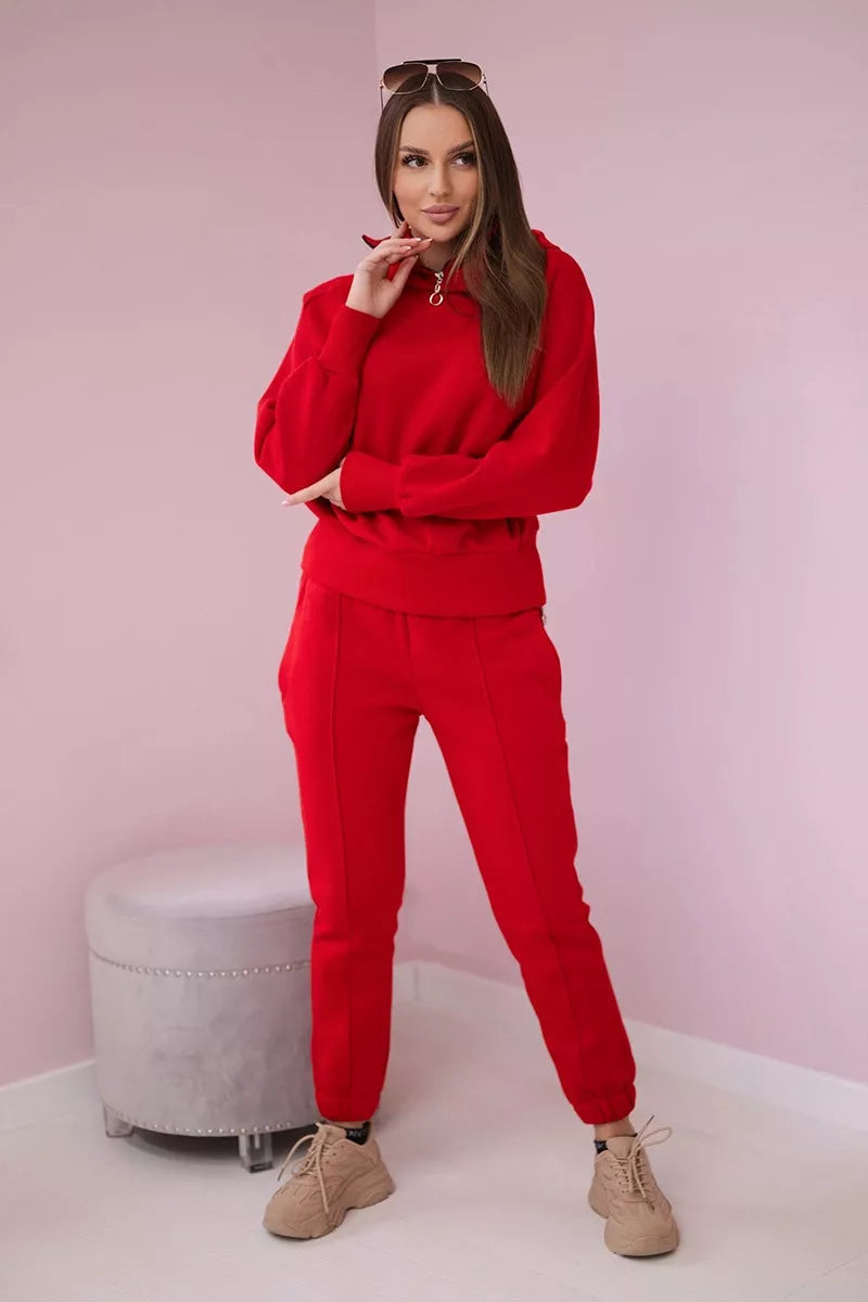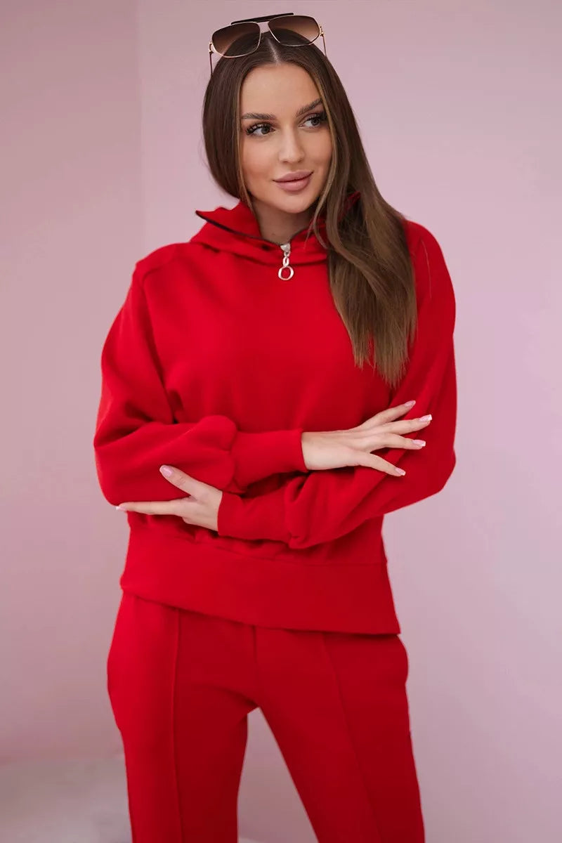 Piedāvājam džemperu un bikšu komplektu. Džemperis ar kapuci un augstu apkakli. Bikses ar elastīgu jostu. Komplekts izgatavots no siltumizolējoša materiāla. Izmērs ir universāls un piemērots sievietēm ar izmēru S, M vai L.