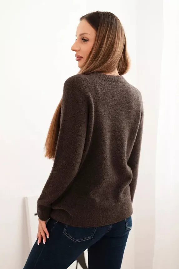 Šis sieviešu džemperis, bagātināts ar greznu mazuļu alpakas vilnu, ir lieliski piemērots sievietēm, kuras novērtē dabiskus materiālus, eleganci un komfortu. Klasiskais dizains ar garām piedurknēm un apaļu kakla izgriezumu ļauj to valkāt katru dienu – gan darbā, gan izbraukumos ar draugiem. Džemperis ir mīksts, silts un ļoti patīkams ādai. Pateicoties nedaudz elastīgajam materiālam, džemperis lieliski pielāgojas ķermenim, neierobežo kustības. Tas ir lielisks pamats, ko var valkāt ar džinsiem, svārkiem vai zem jakas. Izmērs ir universāls un derēs S, M vai L izmēra sievietēm. (krūšu apkārtmērs: aptuveni 100 cm līdz 110 cm).
