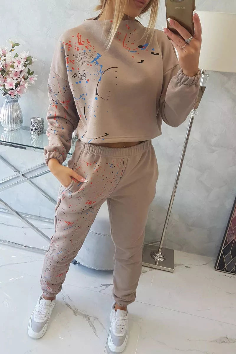 Siltināts džemperis un bikses komplekts. Džemperis un bikses ar krāsainu rakstu. Ja vēlaties izcelties no pūļa, šis komplekts ir tieši Jums. Izmērs ir universāls un piemērots sievietēm, kuras valkā S, M vai L izmēru.