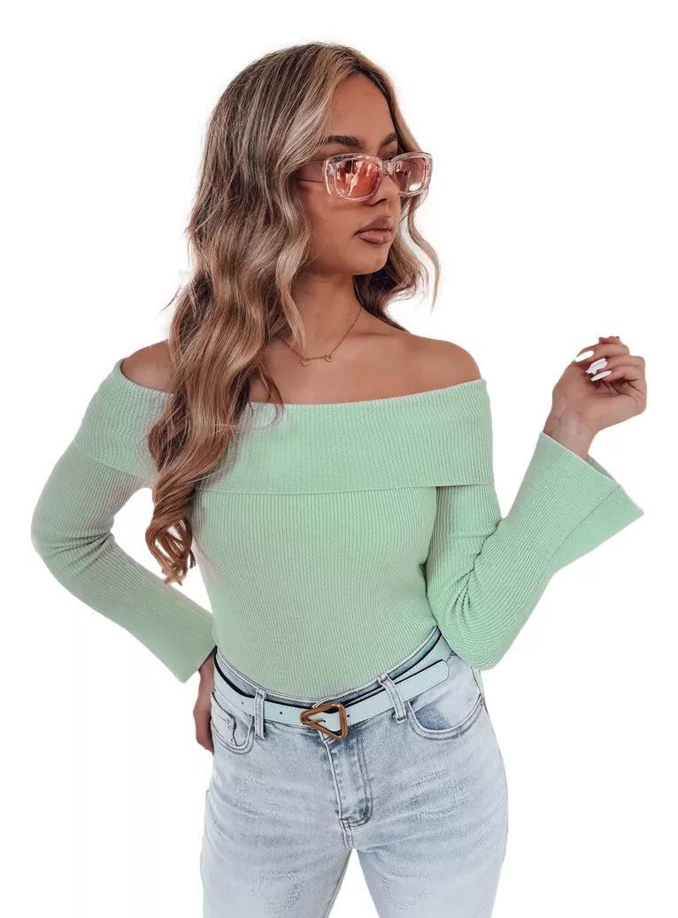 Džemperis ar kakla izgriezumu, kas skaisti atsedz plecus. Pieguļošs piegriezums izceļ siluetu, un platas piedurknes piešķir eleganci. Materiāls ir patīkams pieskārienam, padarot to par īstu baudu valkāt. Lieliski sader ar džinsiem vai zīmuļsvārkiem.