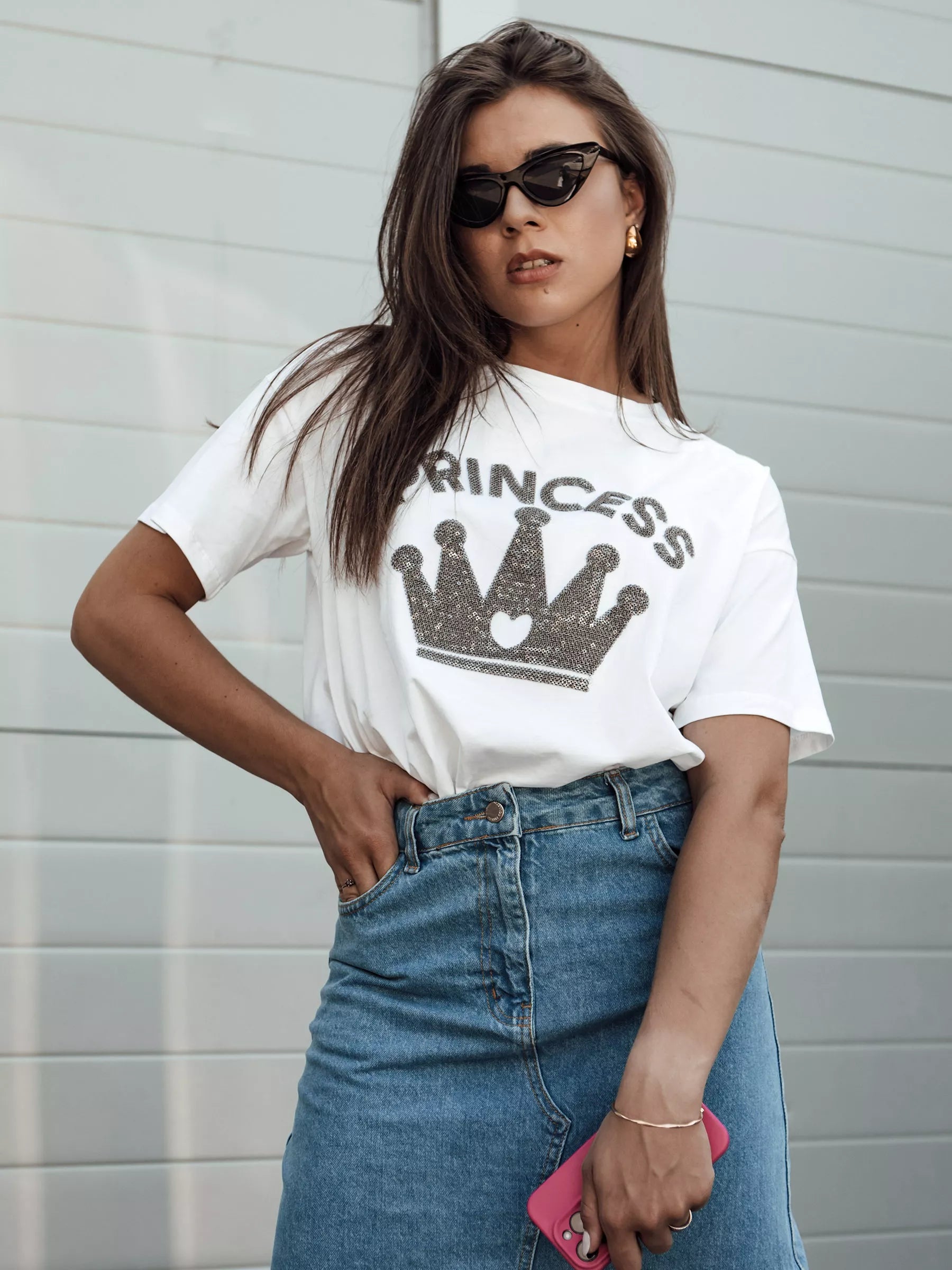 PRINCY T-krekli ir sinonīms mūsdienīgam stilam ar spīdīgiem akcentiem, kas piesaista uzmanību un piešķir kreklam unikalitāti. Pateicoties klasiskajam piegriezumam, tas ir lieliski piemērots jebkuram gadījumam un nodrošina valkāšanas komfortu. Šis T-krekls ir obligāts katras sievietes garderobē, kura vēlas justies kā īsta princese.