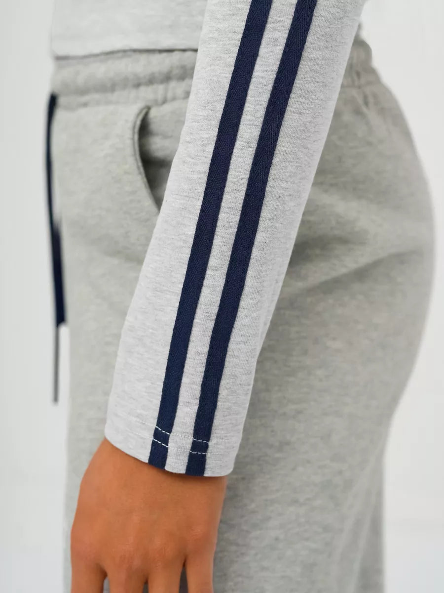 Šis brīvā laika komplekts ir stilīgs un ērts, ideāli piemērots aktīvam dienas ritmam. Komplektā ietilpst garas bikses ar baltu aukliņu jostasvietā, kas nodrošina komfortu un iespēju regulēt izmēru. Bikses ir brīva piegriezuma, ļaujot justies brīvi un ērti. Piemērotā garo piedurkņu kreklā ir dekoratīvs sarkans skaitlis "75" un uzraksti "Since 19" un "87". Piedurknes ir ar lentītēm, kas piešķir modernu akcentu. Šis komplekts ir ideāls gan sportam, gan brīvā laika pavadīšanai. Kombinējiet to ar baltām sporta apaviem, lai radītu pilnīgu un harmonisku tēlu!