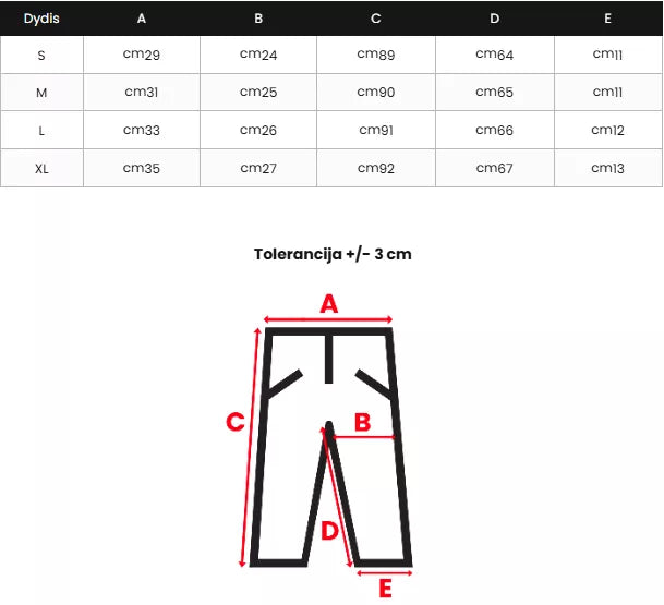 Izmēru tabula fotogalerijā.