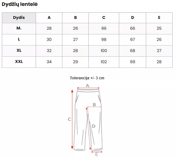 Izmēru tabulu varat atrast fotogalerijā.