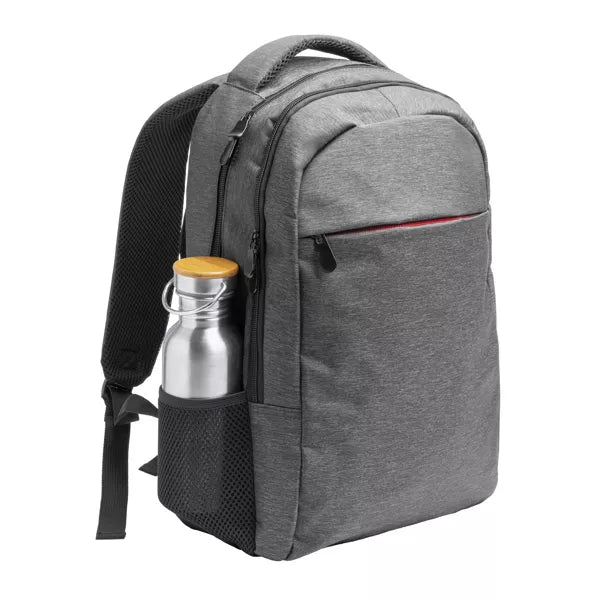 Stilīga un funkcionāla mugursoma ar neuzkrītošu sarkanu akcentu – lieliska izvēle darbam, mācībām vai ikdienas lietošanai. Mūsdienīgs dizains apvienojumā ar praktiskām funkcijām: ietilpīgs galvenais nodalījums ar rāvējslēdzēju, priekšējā kabata ātrai piekļuvei bieži lietotiem priekšmetiem, divas sānu sieta kabatas ūdens pudelei vai nelieliem priekšmetiem. Polsterētas, regulējamas siksnas un ērts rokturis augšpusē nodrošina komfortu nēsāšanas laikā. Īpaši ērta un kompakta – ideāli piemērota aktīvam dzīvesveidam vai profesionālam tēlam. Ūdensizturīga.