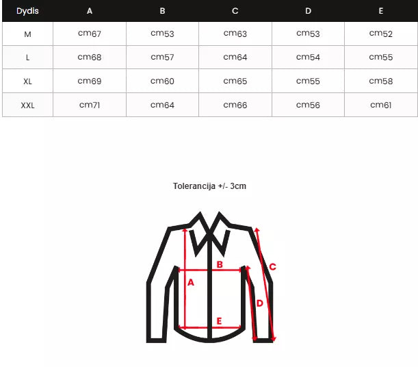 Izmēru tabula fotogalerijā.