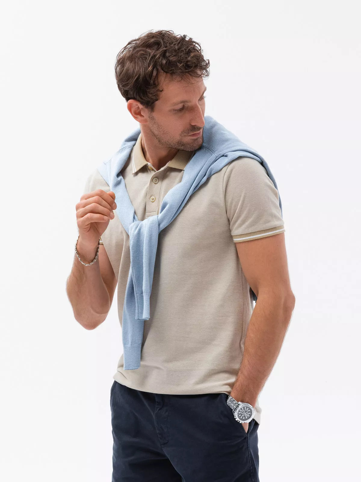 Vīriešu polo krekls ar pogājamu apkakli. Rievotas piedurknes un apkakle. Zīmola izšuvums uz krūtīm.