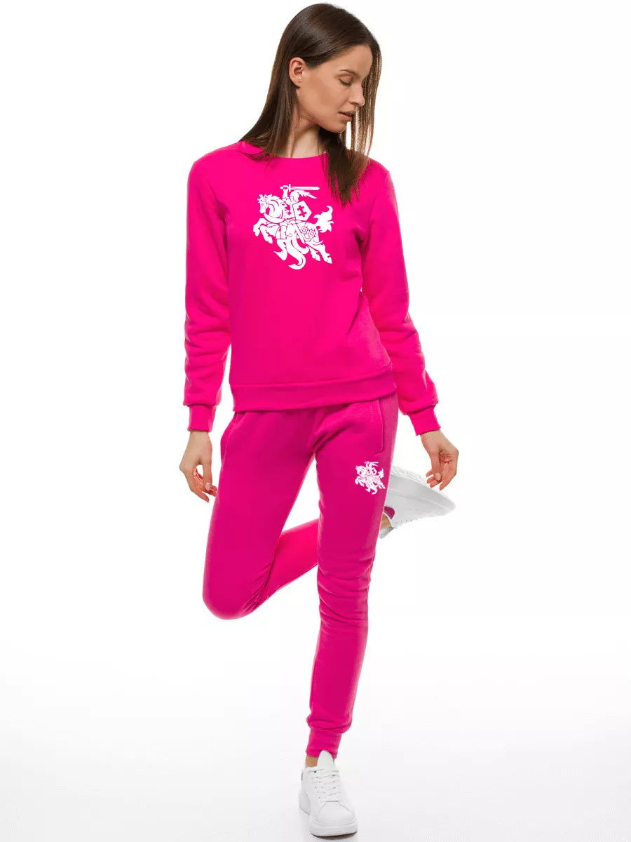 Sieviešu rozā sporta komplekts. Džemperis un bikses. Izcelsmes valsts: Polija. Bikses: 65% kokvilna, 35% poliesters. Džemperis: 65% kokvilna, 35% poliesters. Iespējamā kļūda +/- 3 cm.
