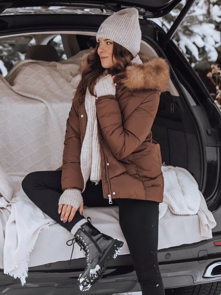 Stepēta jaka ir unikāla un stilīga izvēle rudens un ziemas dienām. Izgatavota no nedaudz matēta materiāla, tā ne tikai piesaista uzmanību, bet arī nodrošina siltumu un komfortu aukstākās dienās. Jaka ir aiztaisāma ar rāvējslēdzēju un spiedpogām, kas garantē papildu siltumizolāciju un pasargā no aukstuma. Nenoņemamā kapuce ar kažokādu piešķir eleganci.