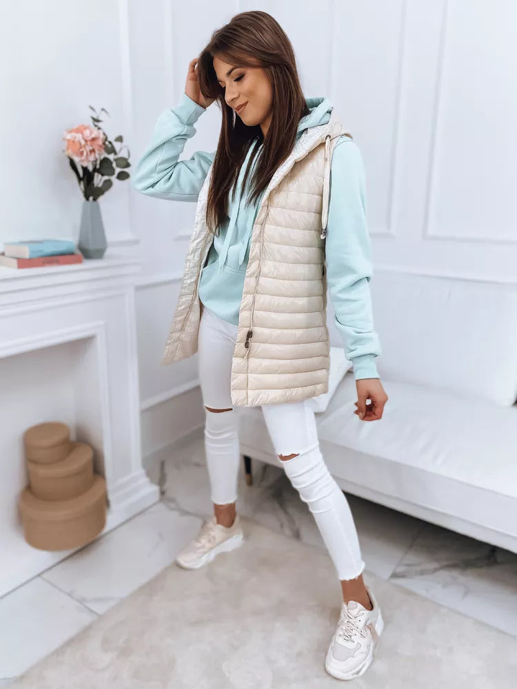 Garāka piegriezuma veste, kas lieliski papildina apģērba stilu. Tai ir divas kabatas sānos, kas aiztaisāmas ar rāvējslēdzējiem. Modelis ir apgriežams, tāpēc to var valkāt divos veidos.
