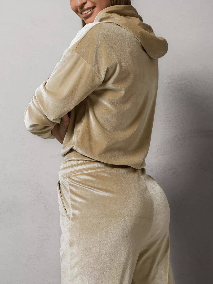 Sieviešu kostīms ir piemērots ne tikai treniņiem, bet arī aktīvai atpūtai. Komplektā ietilpst bikses un džemperis.
