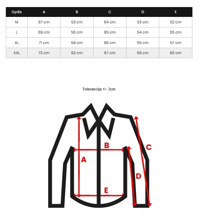 Modele (182 cm, 87 kg) valkā L izmēru.