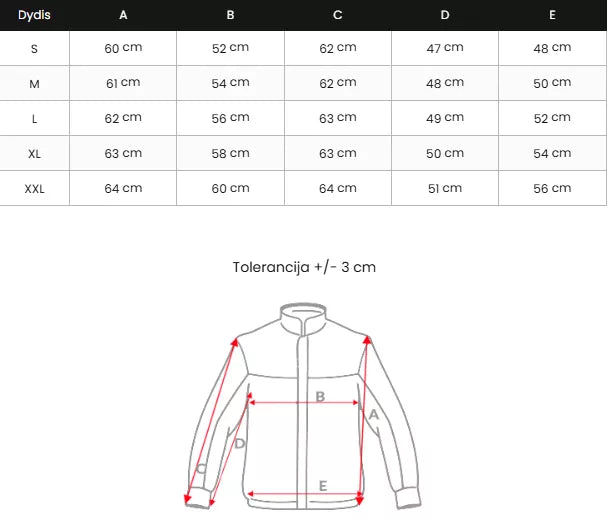 Izmēru tabulu varat atrast fotogalerijā.