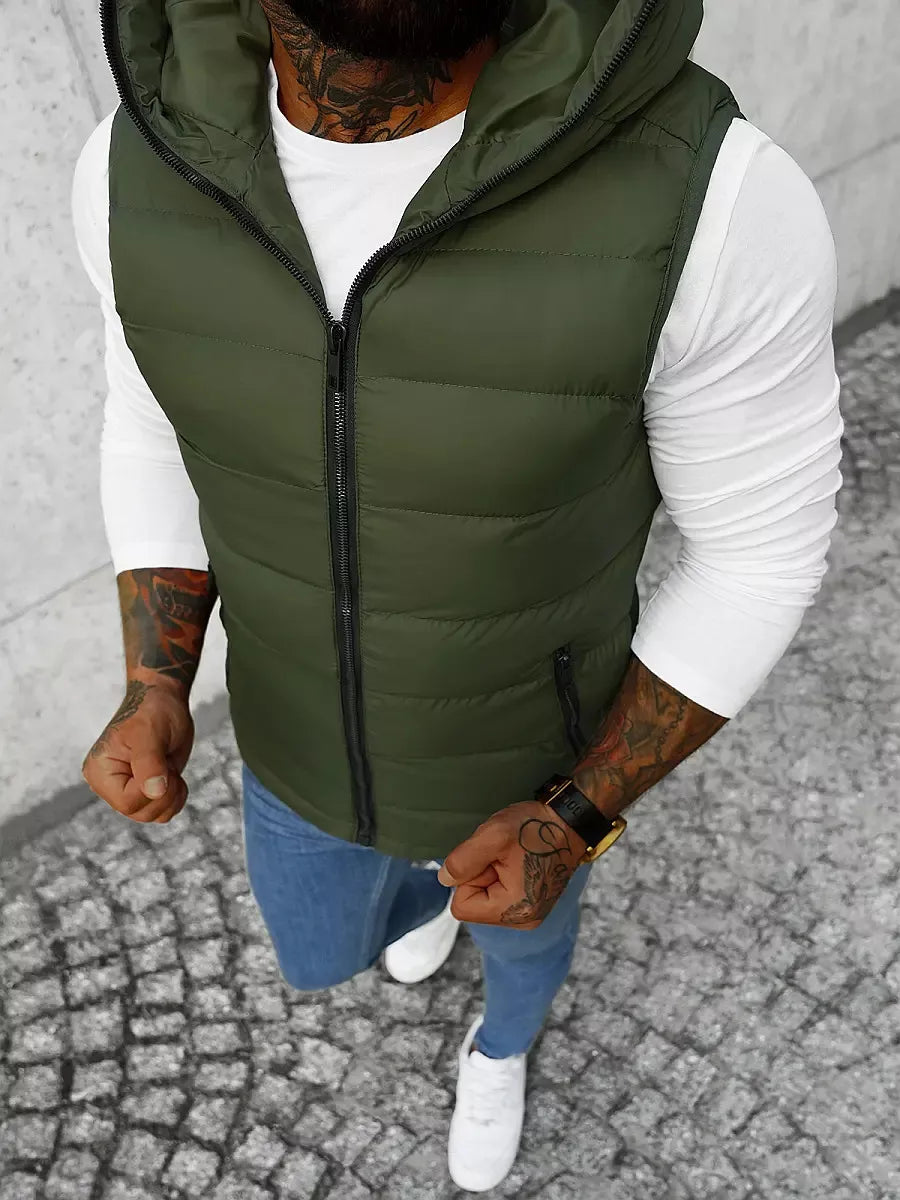 Vīriešu veste ar kapuci un rāvējslēdzēju. Kapuce ir ideāli piemērota aukstām, vējainām dienām. Vestei ir sānu kabatas ar rāvējslēdzējiem.