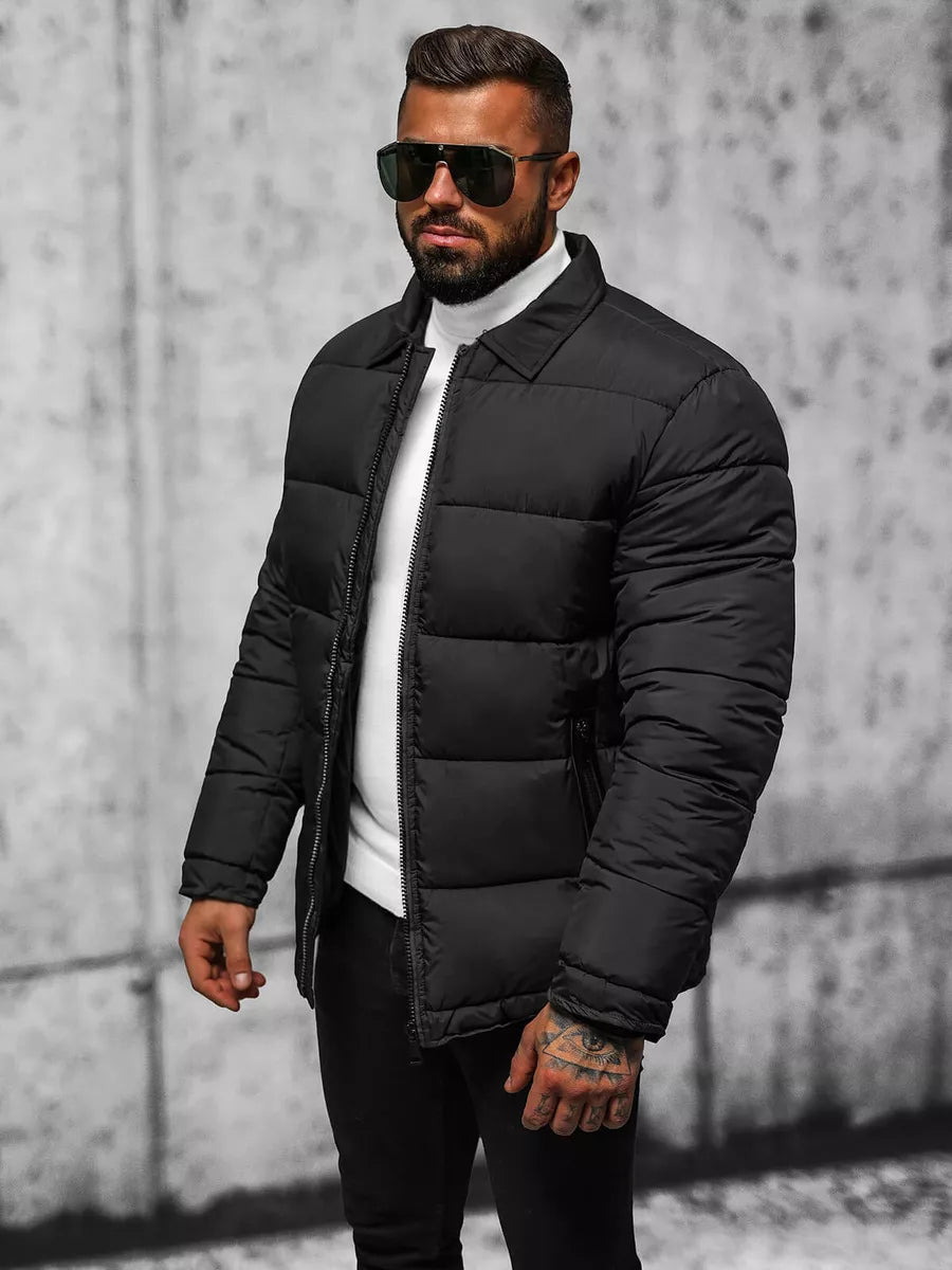 Vīriešu stepēta jaka no jaunākās kolekcijas. Aizdare ar rāvējslēdzēju, ar dekoratīvu kažokādas apdari, ko var noņemt. Sānos ir kabatas ar rāvējslēdzējiem.